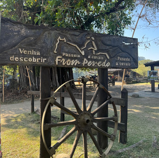 Na fazendinha também é possível contratar passeio de pônei com a duração de 30 min por 30,00 reais ao redor do rancho, puxado pela própria família. E como minha filha mais velha era grande demais para o pônei, autorizaram que ela fizesse o passeio a cavalo da mesma forma, mas tivemos que aguardar se haveria disponibilidade, já que há bastante procura para o passeio de cavalo, com duração de 1h por 100,00 reais, com guia especializado que por uma trilha com mirante e cachoeira.